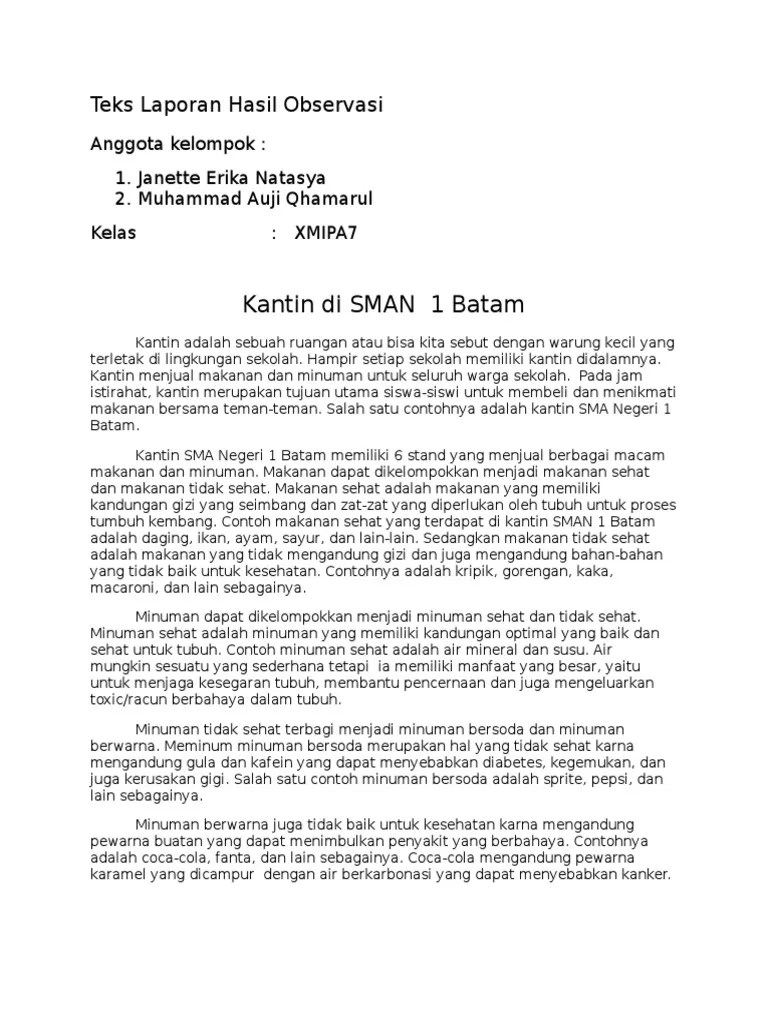 Contoh Hasil Laporan Hasil Teks Observasi / Doc Teks Laporan Hasil Observasi Nurul Aprilia Academia Edu - Untuk lebih jelasnya, bisa memahami contohnya.